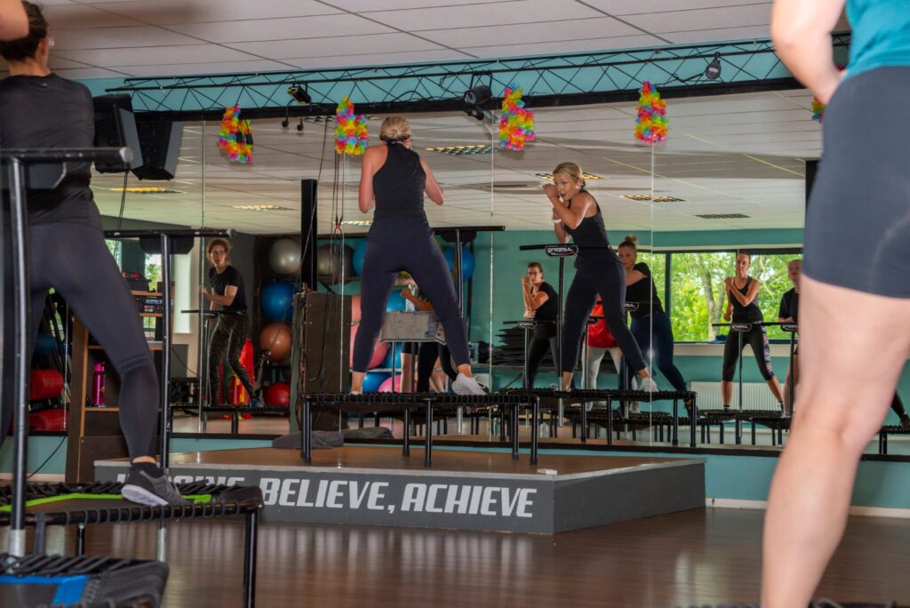 Jumping Fitness is een energieke en effectieve full-body workout op een speciaal ontwikkelde fitness-trampoline. Op motiverende muziek combineer je sprongen met kracht-, balans- en cardio-oefeningen. De training is intensief, maar dankzij de trampoline vriendelijk voor de gewrichten. Jumping Fitness verbetert je conditie, versterkt je spieren, stimuleert vetverbranding en zorgt vooral voor veel plezier en energie. Geschikt voor verschillende niveaus.